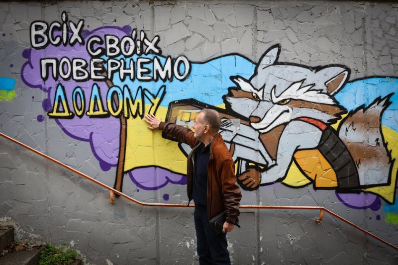 Восени колишній мер Херсона Володимир Миколаєнко, після реабілітації у столиці, повернувся у рідне місто. У російському полоні він пробув понад три роки. 24 серпня 2025 року його звільнили у рамках обміну. На фото — Володимир Миколаєнко біля стінопису у середмісті Херсона, листопад 2025 року. Суспільне Херсон/Олександр Корняков