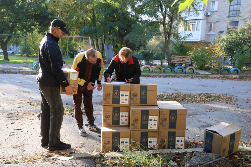 У Херсоні продовжують надавати гуманітарну допомогу. Її отримують ті, хто потребує найбільше. Списки складають квартальні та голови ОСББ. На фото — видача “гуманітарки”, 21 жовтня 2025 року. Суспільне Херсон/Олександр Корняков