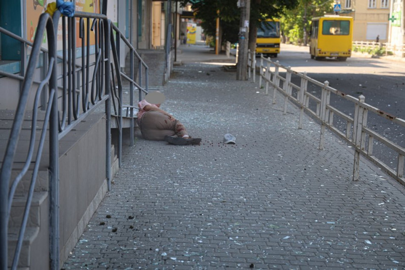 Російські дрони у 2025 році, за даними ОВА, стали найсмертоноснішою зброєю армії РФ. Упродовж року вони полювали не лише на громадський транспорт, рятувальників, поліцейських, “швидкі”, а й атакували перехожих на вулицях міста. На фото — атака БпЛА у середмісті Херсона 8 липня 2025 року й поранений внаслідок неї чоловік. Суспільне Херсон/Олександр Корняков