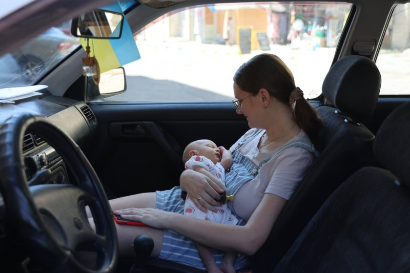 Та попри все у Херсоні та області народжуються діти. За даними ОВА, у 2025 році на світ з’явились 204 немовляти, зокрема у Херсоні, станом на 1 листопада, понад 90. На фото — херсонка з новонародженою дитиною, 31 липня 2025 року. Суспільне Херсон/Олександр Корняков