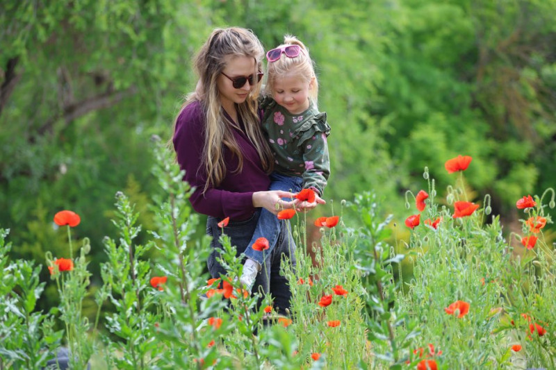 Сніг у квітні, а наступного місяця вже квітучі маки. Так виглядав сквер Грушевського 24 травня 2025 року. Попри постійні обстріли й стреси, жителі міста знаходили в собі сили помилуватись красою. Суспільне Херсон/Олександр Корняков