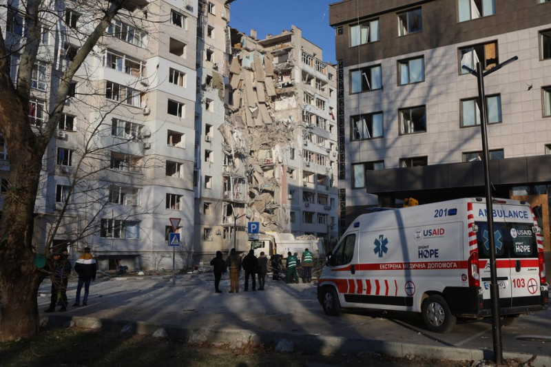 10 лютого вночі армія РФ скинула три КАБи на Херсон. Одна з них влучила у багатоповерхівку і зруйнувала 15 квартир, з першого по десятий поверхи, в одному під’їзді. Ще у 80 квартирах вибило шибки. Шестеро людей, зокрема двоє дітей, отримали поранення. Двоє — загинули. Їх тіла дістали з-під завалів будинку. Суспільне Херсон/Олександр Корняков