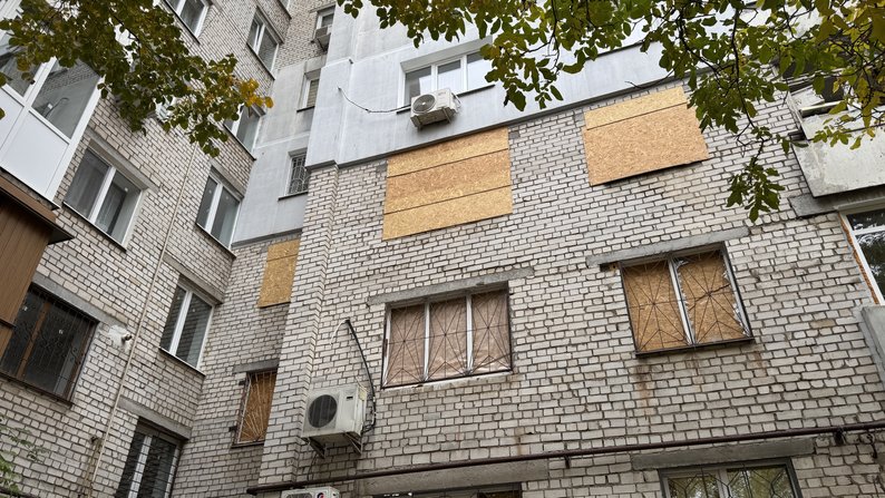 Багатоповерхівку на вулиці Вадима Благовісного, пошкоджену ракетними ударами у 2022 році, відновили у 2024-му. Втім цьогоріч будинок знову зазнав руйнувань. Серед пошкоджених квартир — оселя Валентини. Після удару не лишилося жодного вцілілого скла.
