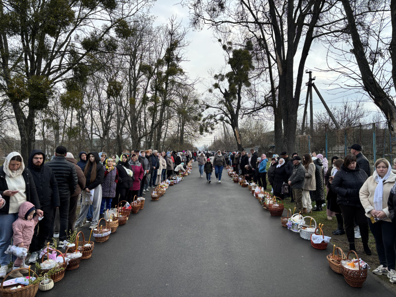 У місті Ямпіль до храму Святого Великомученика і Цілителя Пантелеймона ПЦУ святити великодні кошики прийшли близько 3 тисяч людей.