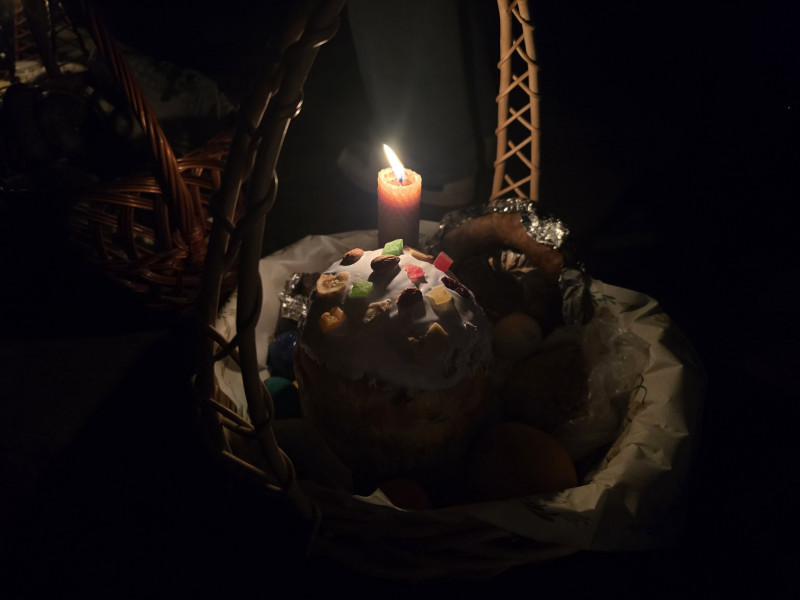 "У кошик поклали все, як годиться: паска, масло, ковбаска, крашанки, обов'язково сіль, водичку клали. Традицінйо тато у нас збирає кошик, а мама готує", — розповіла Євгенія Демʼянишина.