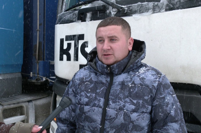 На ділянці траси Київ–Чоп у межах Рівненської області рух вантажного транспорту перекрили. Водій Михайло розповів, що занепокоєний станом доріг.