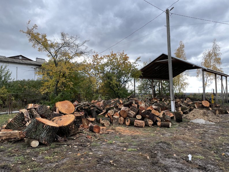 Дрова на території лікарні, які заготовили для опалення приміщення. Суспільне Полтава