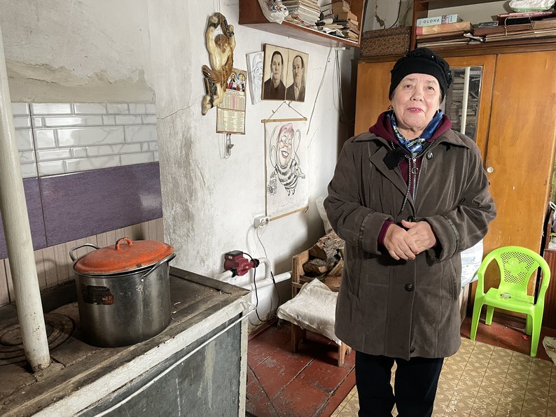 Надія Швед із села Попівка Опішнянської громади, що на Полтавщині, топить у хаті грубу. Розповіла, що після російських обстрілів енергетичних об’єктів у регіоні люди лишаються без газу.