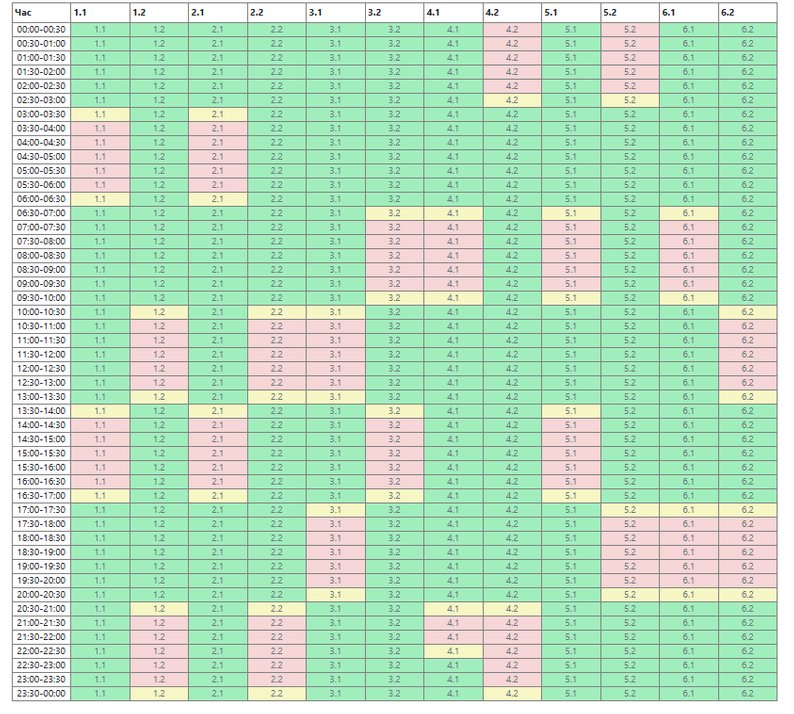 Попередньо, за підчергами світло вимикатимуть наступним чином: