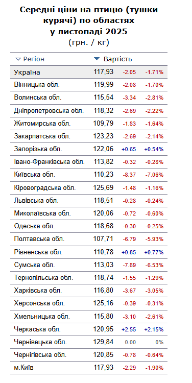 Середні ціни на птицю Міністерство фінансів України