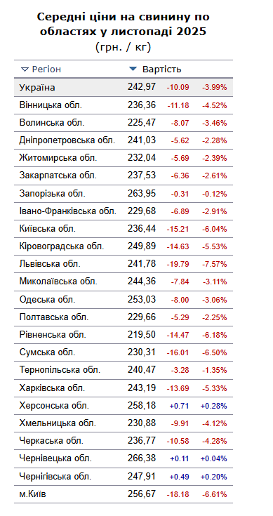 Середні ціни на свинину Міністерство фінансів України