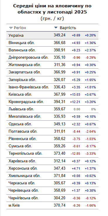 Середні ціни на яловичину Міністерство фінансів України