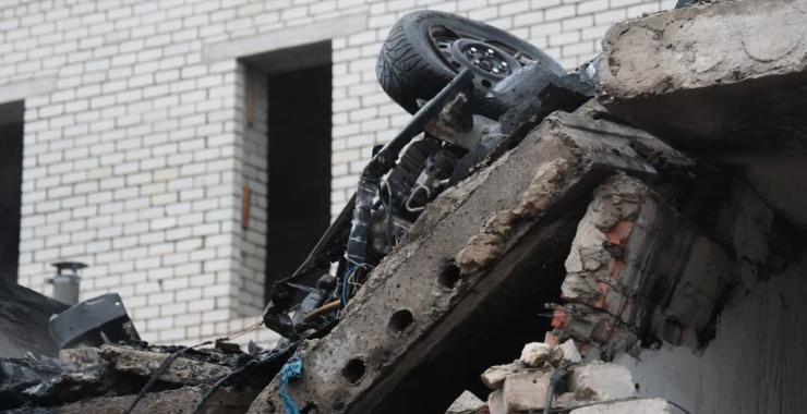 “У результаті вибуху виникла пожежа. Пошкоджено прилеглі багатоквартирні будинки, транспортні засоби та гаражі. Під час проведення рятувальних заходів під завалами було виявлено тіло загиблої особи”, — розповіли поліцейські про те, що побачили на місці.