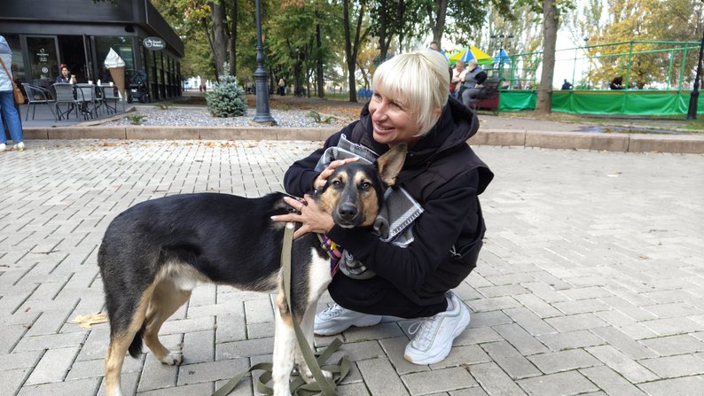 Місцева жителька Аліна живе у приватному будинку, але раніше собак не тримала. Дізналася про виставку-прилаштування в інтернеті і по фото обрала собі песика.
