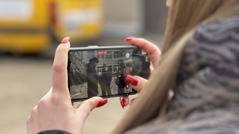 Дівчина знімає на телефон. Суспільне Миколаїв/Юлія Голокоз
