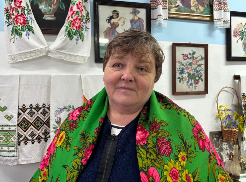 "Бачу, в мене назбиралося вже багато експонатів, всі не поміщаються. Зразу думала розмістити їх на одній стіні. Бачу, в мене вже багато всього є: машинка швейна, софа, лавки, скриня. І рушників, вишиття багато. Думаю, все хочеться показати. Бо це колишнє, зроблене ще перед 30-ми роками".