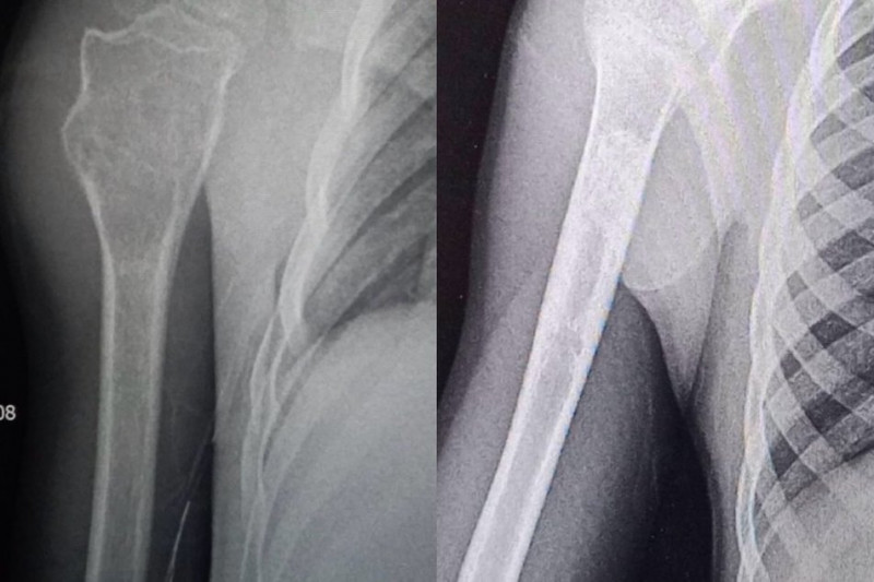 "Після проведення рентгенографії виявили значних розмірів кісту у проксимальному відділі плечової кістки — діагноз кісткова кіста. У цьому клінічному випадку спеціалісти ортопедо-травматологічного центру застосували метод пункційного лікування", — зазначили в публікації.