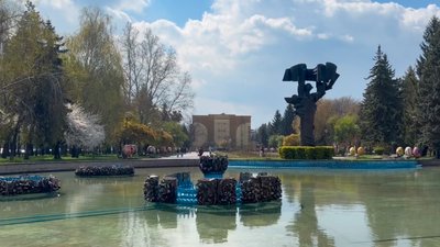 "Працівники Тресту зеленого господарства очистили від старої фарби, бруду та сміття великий та малий фонтани на бульварі Незалежності у Рівному".
