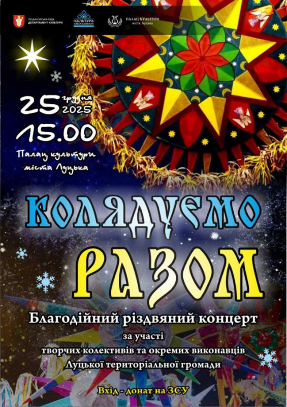 25 грудня о 15:00 лучан та гостей громади запрошують у Палац культури міста Луцька на великий різдвяний концерт «Колядуємо разом».