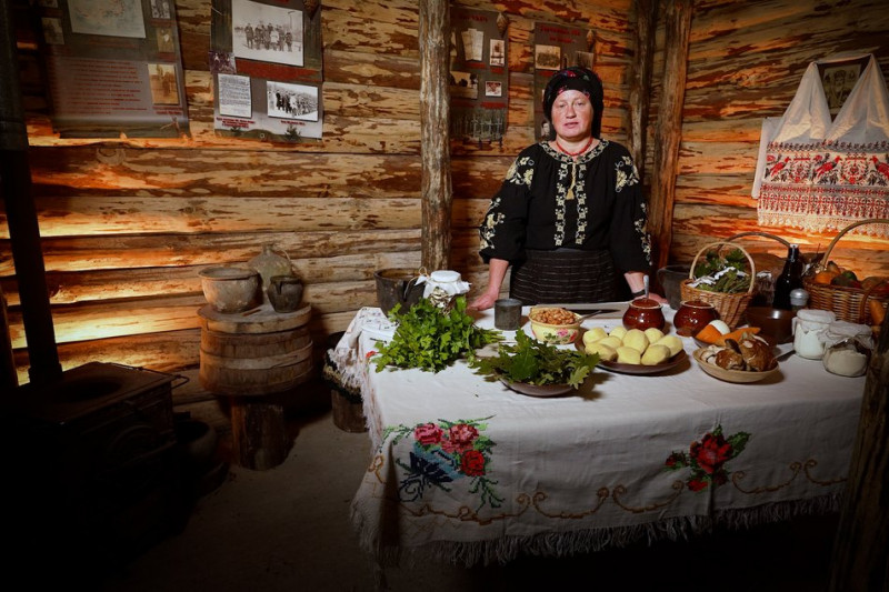 "Ми з вами перебуваємо на території Мізоцької громади в урочищі Гурби, на території Свято-Воскресенського чоловічого монастиря, на повстанських могилах. Це такий укривок — укриття, де зимували наші воїни-повстанці і готували тут одну цікаву страву, — розповіла пані Наталія. — Цю ж страву вже, мабуть, друге століття, не перебільшую, готують в моїй родині — моя мама, бабуся та прабабуся. Це лісова грибова юшка з дубовим листям — проста страва, але досить ситна і смачна".