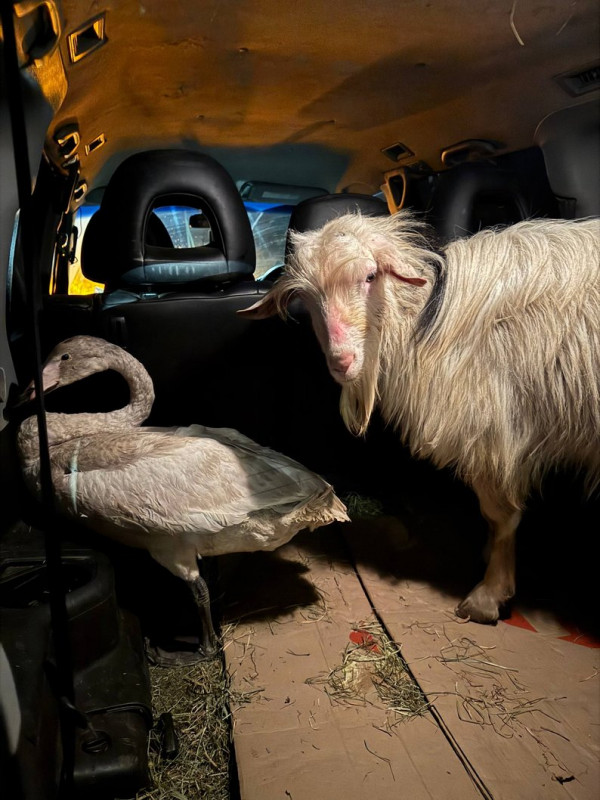 До Центру порятунку та реабілітації диких тварин у Горішніх Плавнях волонтери доставили молодого лебедя, курку та козлика. Травмованих тварин виявили поблизу прифронтового міста Оріхів на Запорізькому напрямі.
