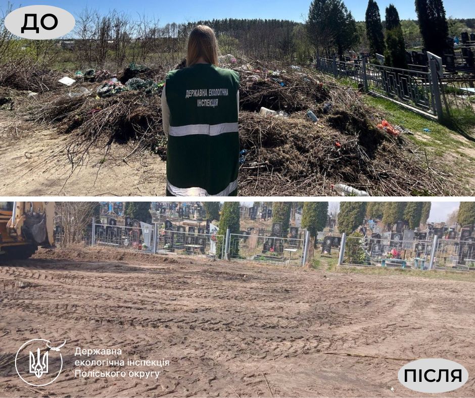 Крім того, повідомлено про ліквідацію несанкціонованого сміттєзвалища, виявленого державними інспекторами у квітні минулого року на території Новогуйвинської селищної ради поблизу кладовища.