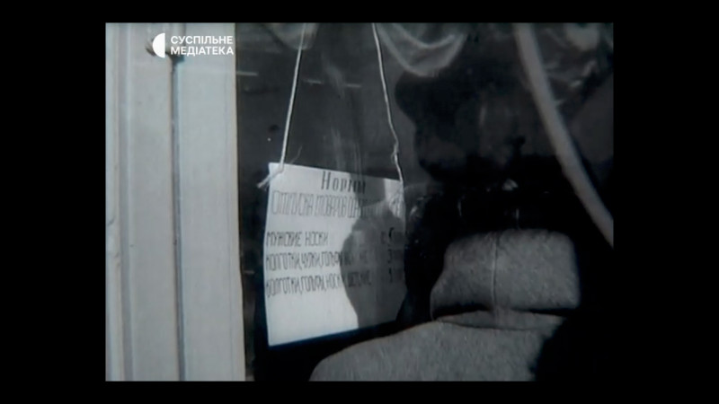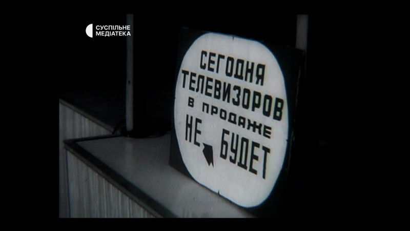 На фото чорно-біла хроніка 1980-их років: табличка “Сьогодні телевізорів в продажі не буде” Суспільне Медіатека