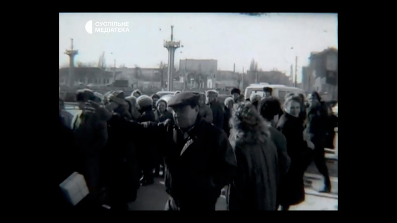 На фото чорно-біла хроніка 1980-их років: черга за продуктами Суспільне Медіатека