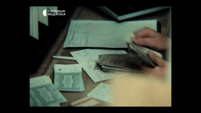 На відео кольорова хроніка 1980-их років: ощадкаса, видача грошей в касі Суспільне Медіатека