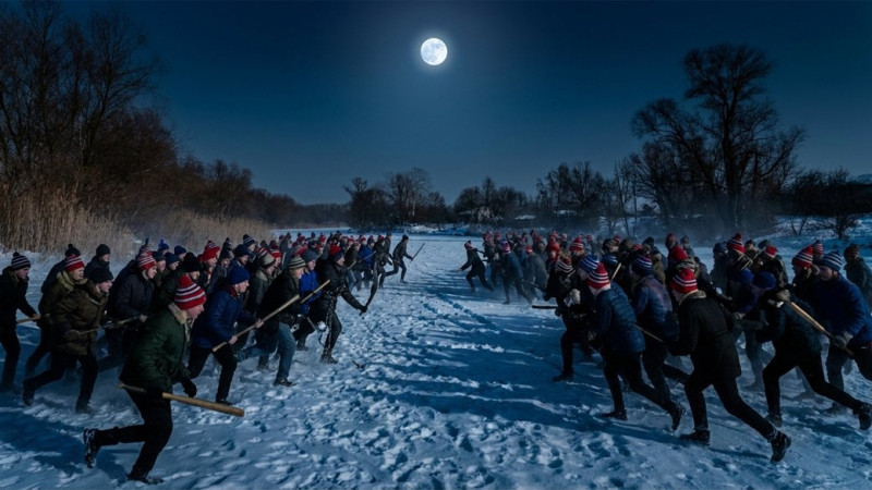 Фото згенероване штучним інтелектом, на якому зображені підлітки перед бійкою “стіна на стіну” на льоду озера “Земснаряд”. aistudio.google.com