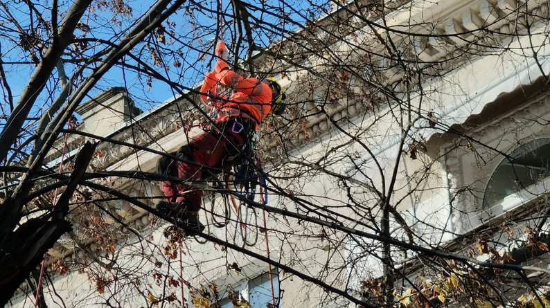"Ця демонстрація показує: перше — що можливо це зробити без техніки в якійсь щільній забудові, по-друге — автономно, третє — принципи обрізки залишаються тими самими", — каже арборист Сергій Рубець.