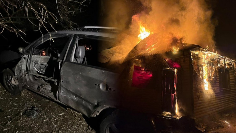 Пошкоджене авто та палаючий будинок у Семенівці на Чернігівщині 28 листопада 2025 року. Олександр Селіверстов