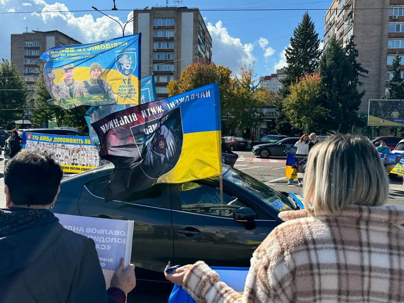 На акцію "Не мовчи — полон вбиває" зібрались рідні, друзі захисників, волонтери, військові та небайдужі містяни. Вони закликали водіїв, які проїжджали повз, посигналити та підтримати родини воїнів.