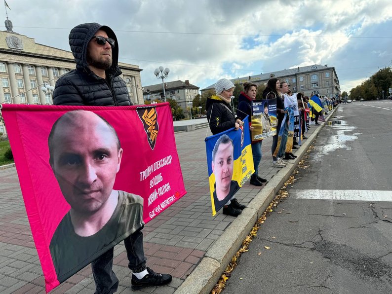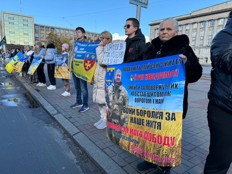 "По-перше, я вірю, що він живий, я хочу, щоб його знайшли. Він зник безвісти 11 березня 2025 року. Підіймали дрони й нам сказали, що його немає серед мертвих. Я вірю, що він живий, я знаю, що він у полоні. Я добиваюсь, щоб нас почули, щоб їх шукали не на словах, а на ділі. Сидячи вдома, це важко пережити, тож коли ми сюди виходимо, стає трішки легше. Коли ми тут спілкуємось між собою, дізнаємось якісь новини.