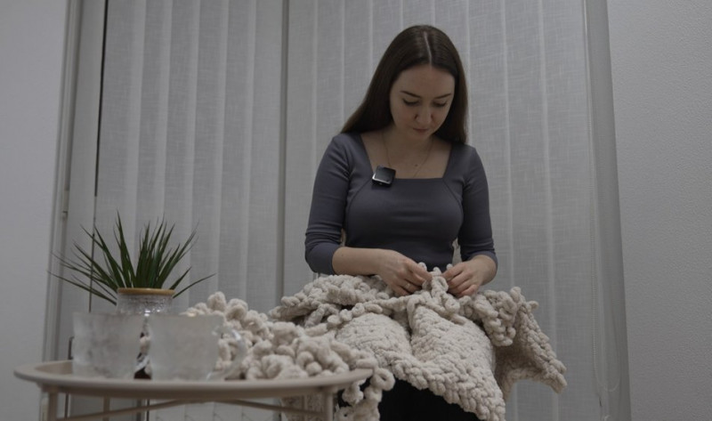 Анастасія Кудінова в’яже плед. Суспільне Тернопіль