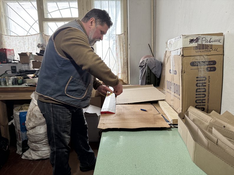 Іван Легкий виготовляє так звані “равлики” — картонні заготовки для свічок. Суспільне Полтава
