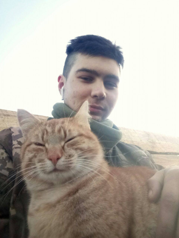 Військовослужбовець Владислав Лук’янчук тримає кота З особистого архіву Луки