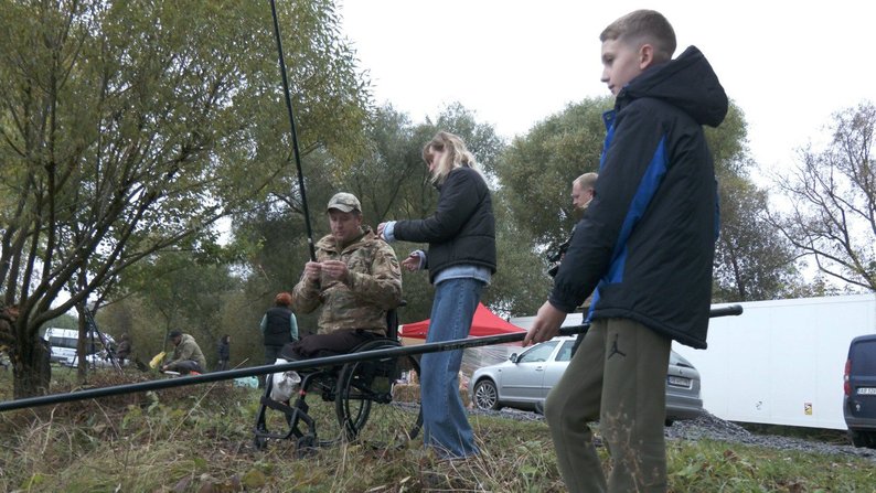 Ловити рибу разом із родиною прийшов ветеран російсько-української війни Сергій разом із дружиною Тетяною та сином Іваном. Суспільному розповів, що спершу підгодував рибу, а вже потім закидав вудочки. Відколи пішов боронити Батьківщину, часу на риболовлю майже не було.