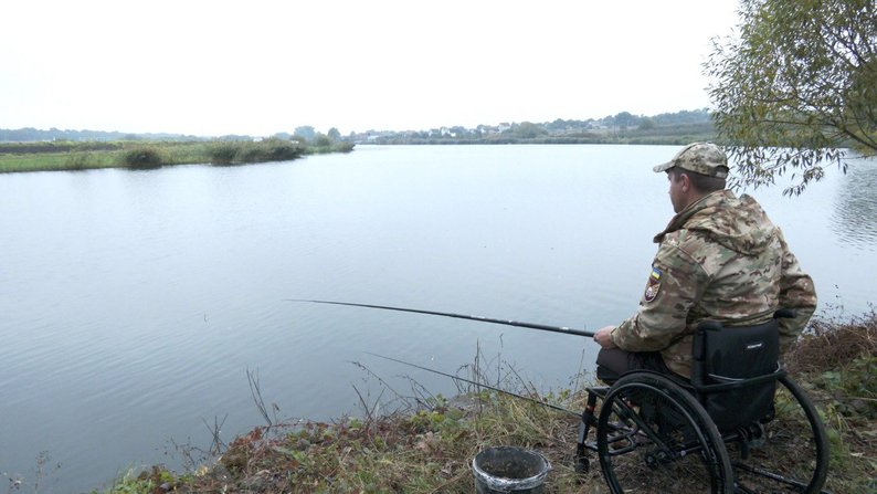 Артур на реабілітації три місяці. На Запорізькому напрямку отримав травму хребта та тривалий час не міг вставати з ліжка. Те, що зараз може сидіти й ловити рибу, каже — заслуга лікарів.