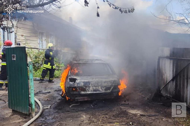 Пожежа сталася 8 серпня у селі Феськівка Менської громади: загорілися авто "ВАЗ-2115" та господарська будівля.