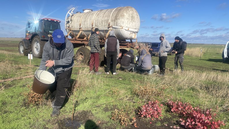 Саджанці висадили навесні 2025 року. Станом на жовтень за рослинами допомагають доглядати місцеві жителі. Олександр Соваков каже, фермерам Миколаївщини також слід звернути увагу на важливість збереження та відновлення лісосмуг.