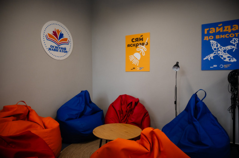 Діти сидять на кріслах-мішках в новому просторі “Вулик” Фонд “savED”
