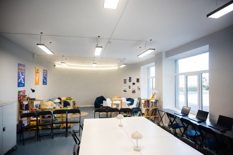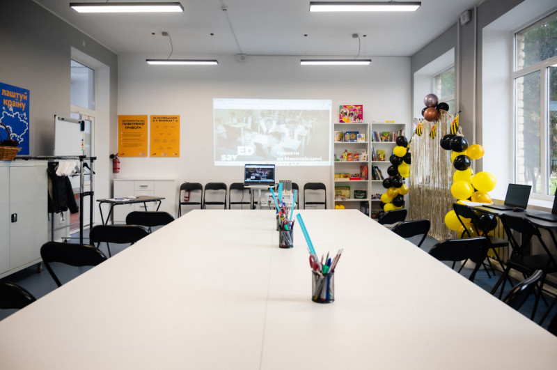 Приміщення освітнього простору у Новому Бузі Фонд “savED” "Діти біжать туди із задоволенням — це неформальний простір з іграми, гуртками, творчими заняттями й навіть кіносеансами. Водночас тут ми проводимо й повноцінні уроки, зокрема фізики та інформатики, адже тепер маємо техніку, якої раніше бракувало".