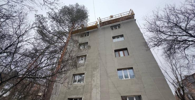 Зараз робітники утеплюють фасад, а в місцях загального користування шпакдлюють стіни. триває утеплення фасаду, а в місцях загального користування – шпаклювання стін для подальшого фарбування. Після завершення всіх робіт будинок буде термомодернізованим.