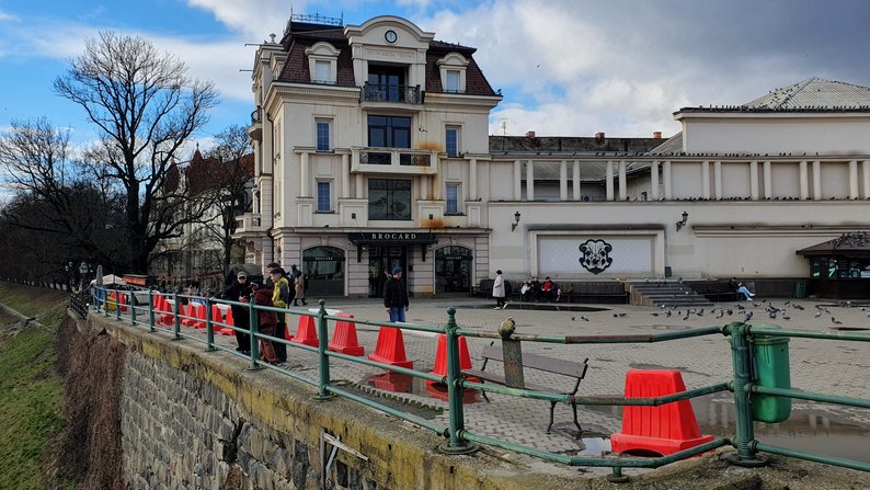 На Театральній площі через ризик обвалу відгородили підпірну стінку. Що каже мер Ужгорода