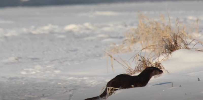 Видра на засніженому березі. НПП “Дністровський каньйон”