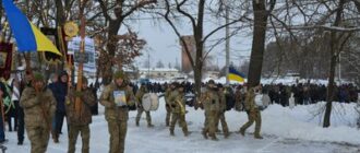 Траурна колона за бійцем Василем Дзюбиком. Збаразька міська рада