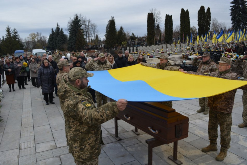 Попрощатися з бійцем прийшли рідні, друзі, знайомі, військові, жителі громади, представники влади і духовенства.