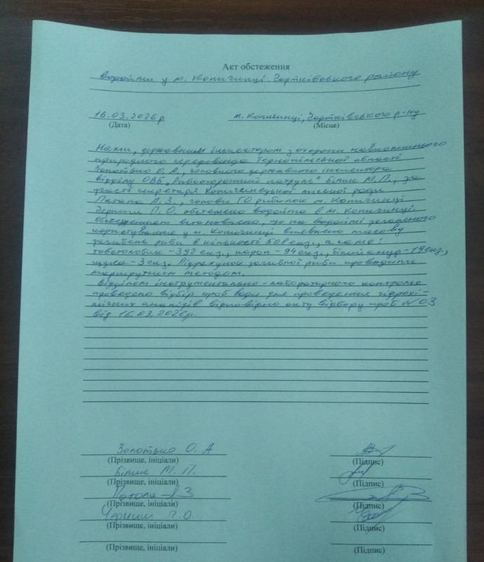 Акт обстеження ставка в Копичинцях. Документ кореспондентам Суспільного надав Андрій Патола. Суспільне Тернопіль