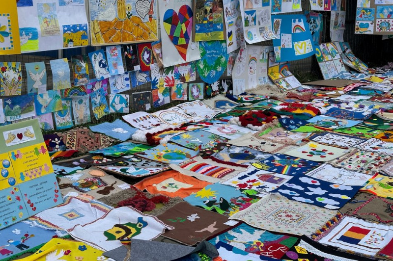 На українсько-румунському кордоні між містами Солотвино і Сигіт 20 лютого організували виставку дитячих малюнків і провели спільну молитву за мир в Україні.